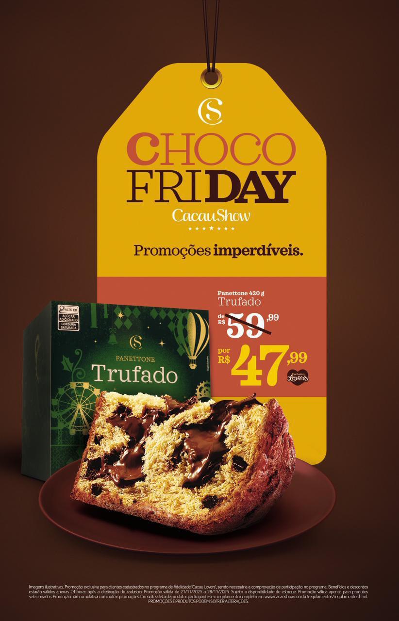 Além de panetones, outros produtos da Cacau Show com preços Chocofriday para você aproveitar!!