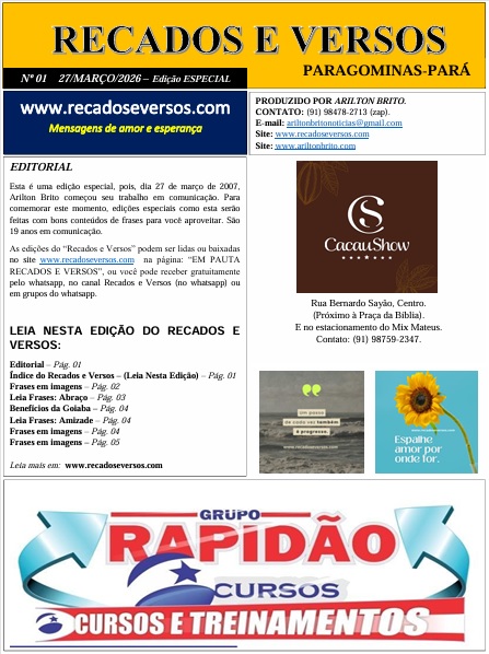 E para comemorar estes 19 anos de comunicação e para reviver o início, que foi através da comunicação escrita, Arilton Brito fará edições como as que eram feitas no começo. Será as edições Recados e Versos em forma de jornalzinho, a primeira edição está disponível, foi lançada em 27 de março de 2026.